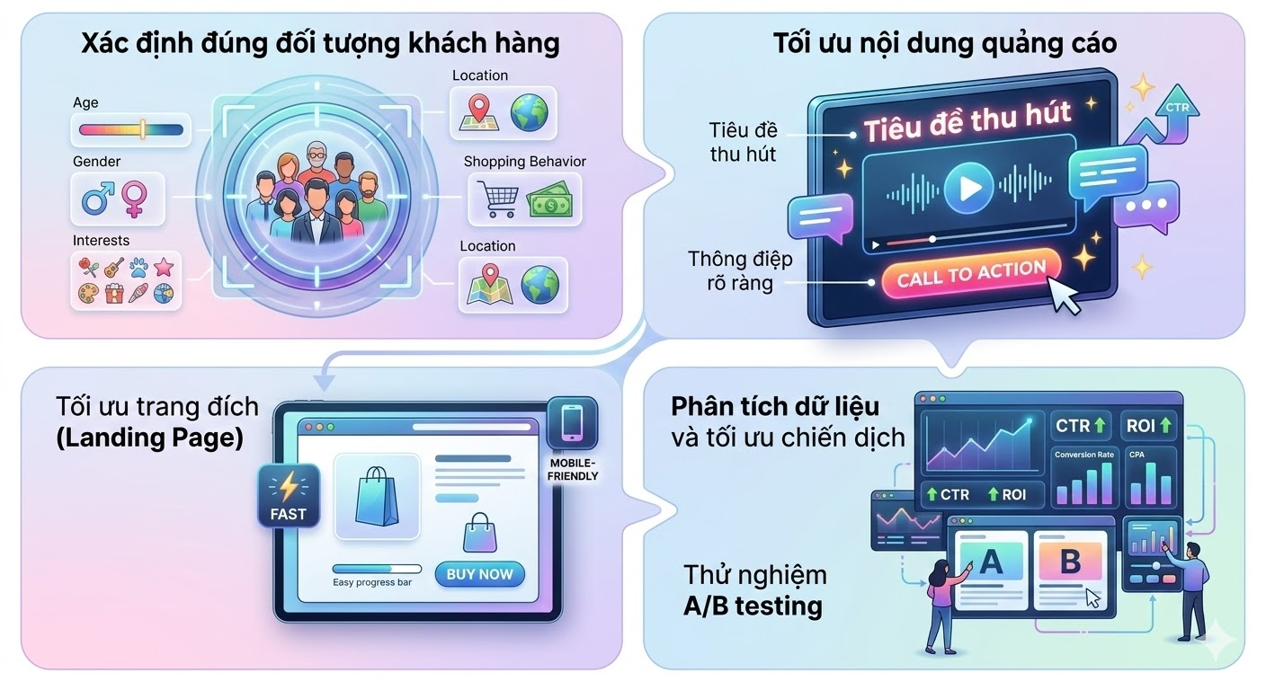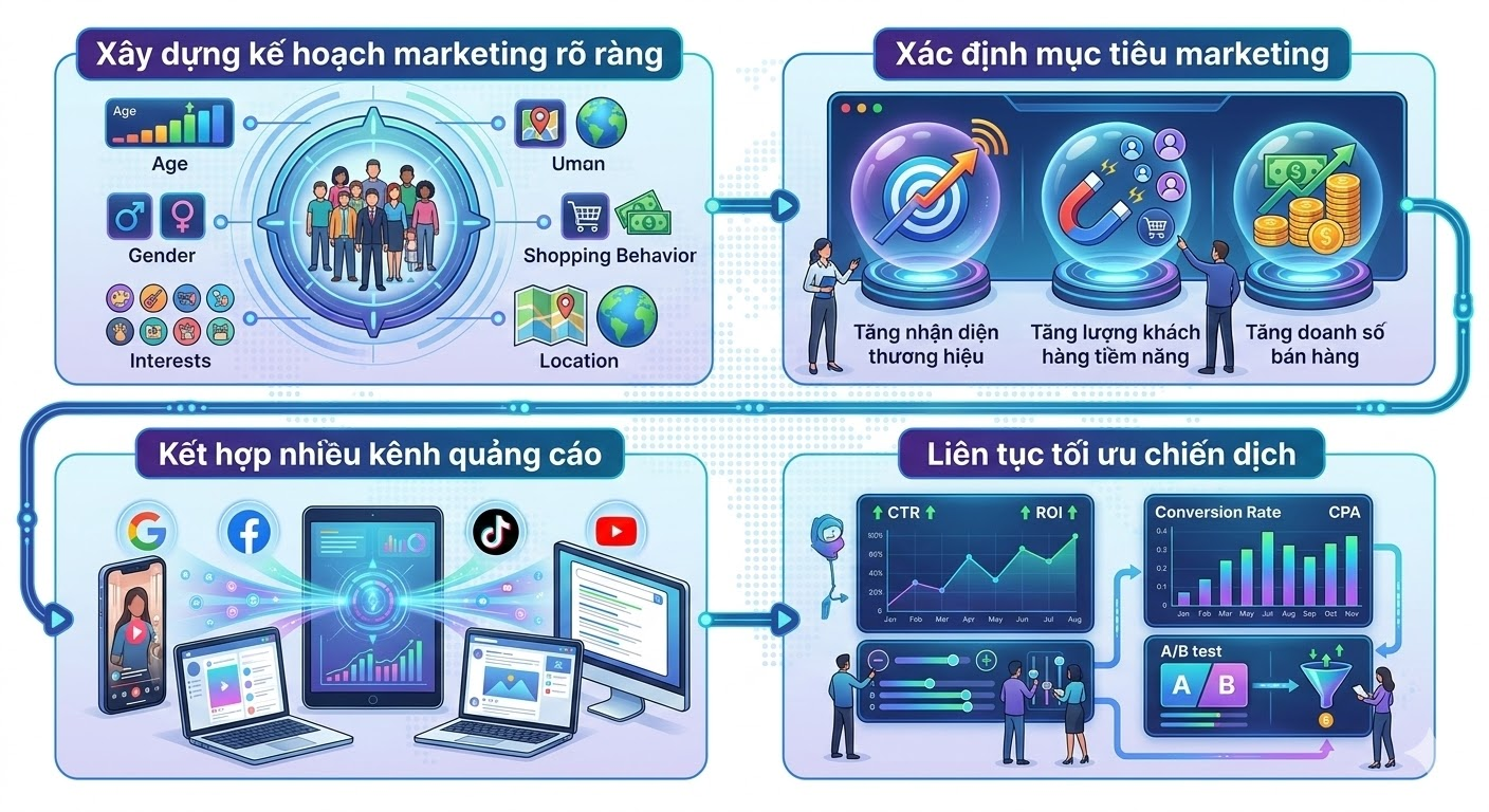 Trong môi trường digital marketing cạnh tranh ngày càng cao, việc tối ưu quảng cáo kỹ thuật số là yếu tố quan trọng giúp doanh nghiệp nâng cao hiệu quả chiến dịch và tối ưu ngân sách marketing. Từ việc xác định đúng khách hàng mục tiêu, tối ưu nội dung quảng cáo đến cải thiện trải nghiệm trang đích và phân tích dữ liệu, tất cả đều đóng vai trò quan trọng trong việc xây dựng chiến lược quảng cáo hiệu quả.